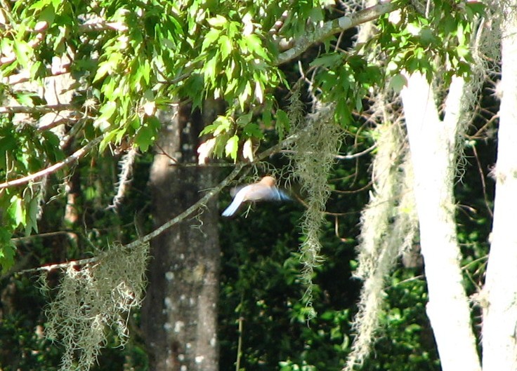 Finally, on the way back to the house, we heard this loud whoosh behind us. Turning quickly, we spotted two Red-shouldered Hawks. It appeared as if one was chasing the other. After they had disappeared into the trees, I spotted one of them beginning to circle overhead: