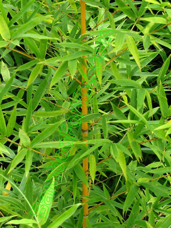 Phyllostachys aurea holochrysa (Golden-Golden Bamboo) This bamboo has small light green leaves with very erect culms. The new culms are a light green color, changing to a beautiful yellow-orange color when mature. Will grow well in a pot. Max. height: 27 ' Max. diameter: 1 ½ " Minimum Temperature: 0o F. |